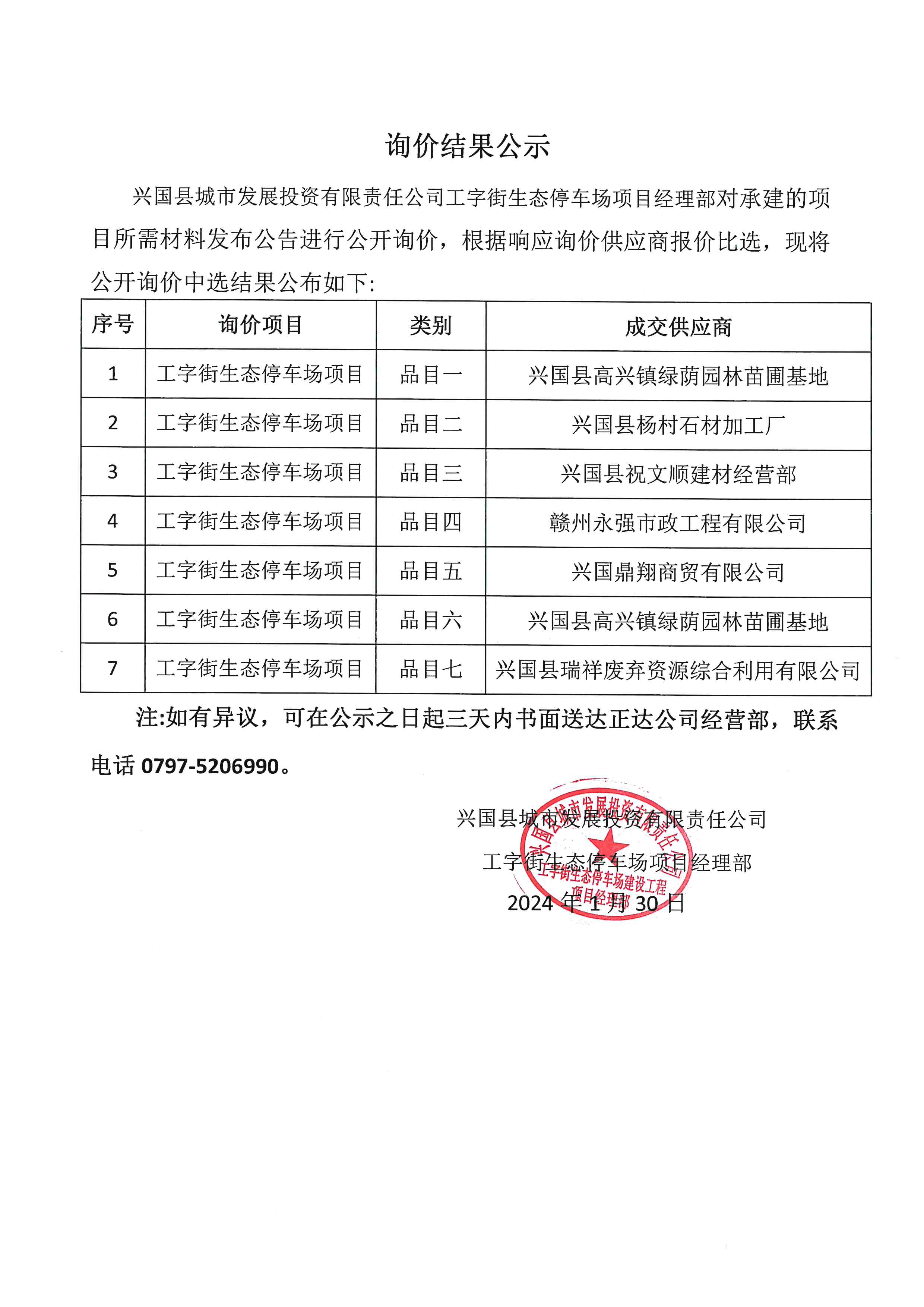 工字街生態(tài)停車場項目詢價中選公示