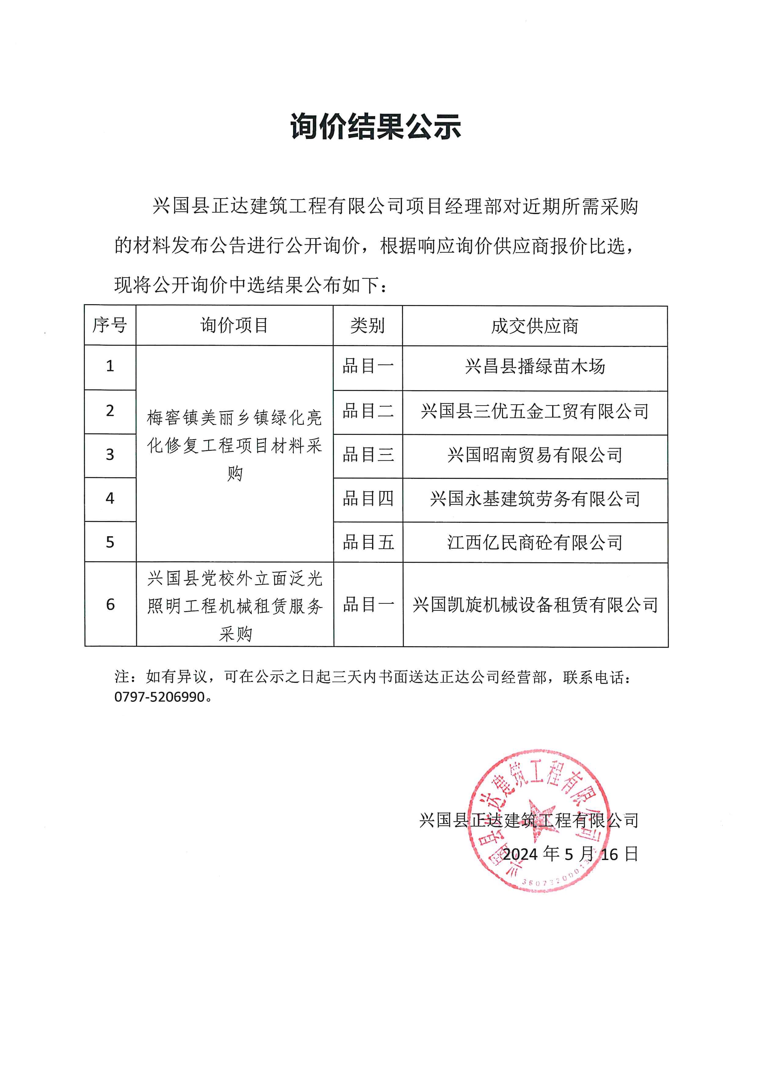 詢價(jià)結(jié)果公示