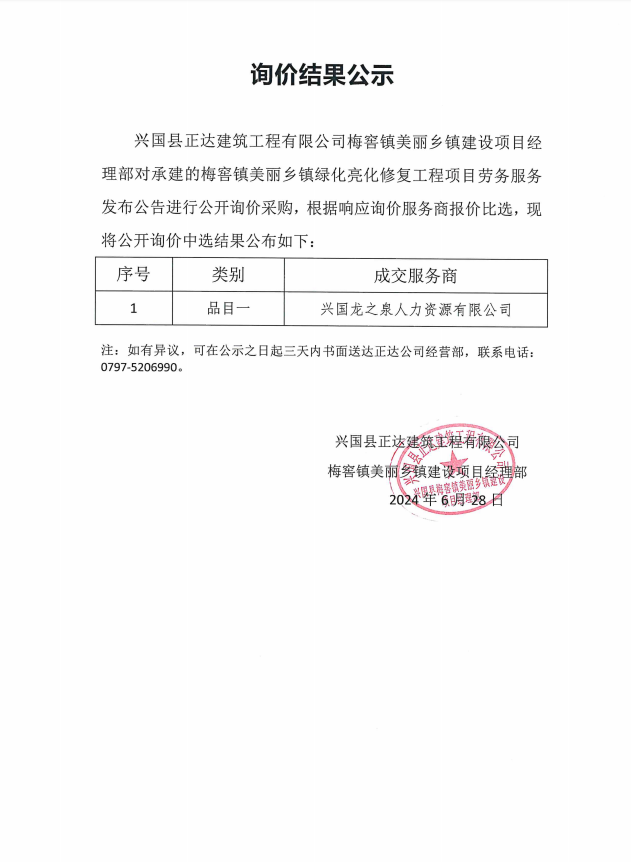 梅窖鎮(zhèn)美麗鄉(xiāng)鎮(zhèn)綠化亮化修復(fù)工程項(xiàng)目勞務(wù)公開(kāi)詢價(jià)結(jié)果公示